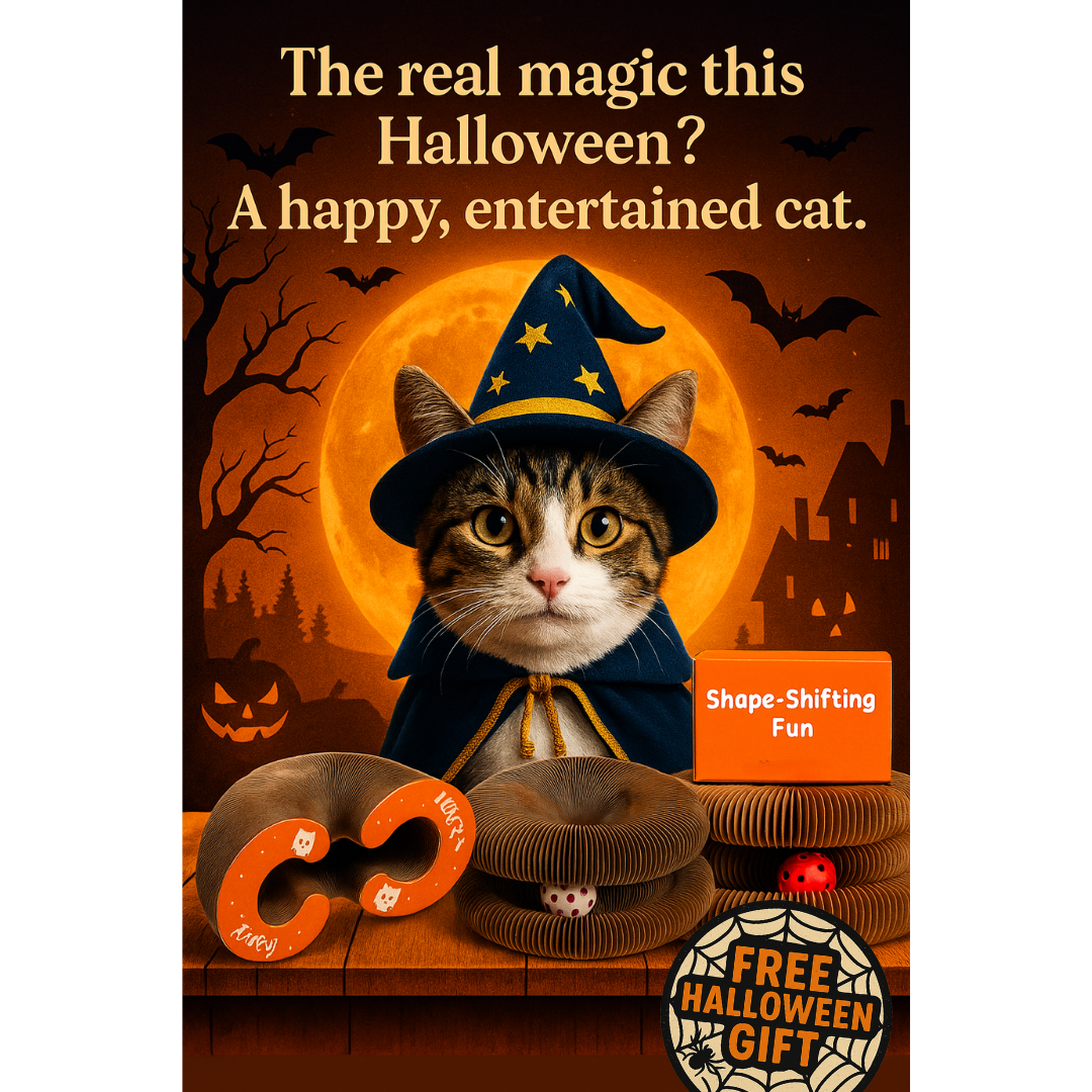 is a 4-in-1 interactive toy that works as a scratcher, ball-track, shape-shifter, and cozy bed. Its shape-changing design, built-in endless ball track, and durable double-layered cardboard keep cats active, curious, and entertained while protecting your furniture. Magnetic connectors let you link multiple units for bigger play zones, and the eco-friendly, non-toxic build makes it safe for all ages—perfect for exercise, mental stimulation, and stress relief.